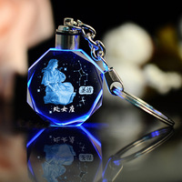 LLavero de cristal con logotipo personalizado de luz luminosa Led con grabado láser 3D para regalo de promoción