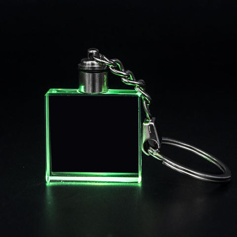 カスタム3Dレーザー彫刻正方形クリスタルキーチェーン青色LEDライト30mm合成ラボ作成フォークアートスタイルギフトボックス