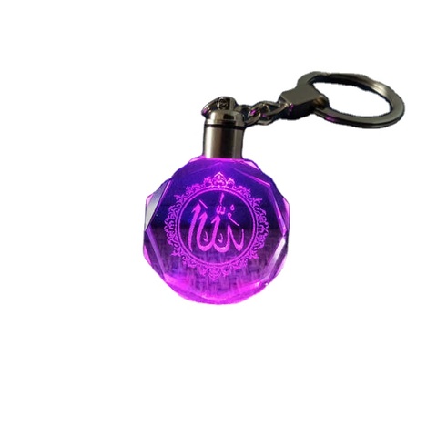 多色LEDライトクリスタルイスラムキーチェーンAli Glass Keychain