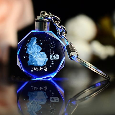 カスタムK9クリスタルキーチェーン3Dレーザー刻印12星座生クリスタルLEDキーチェーンお土産用